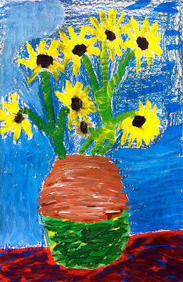 The last step was using a variety of tempra paint colors to add interest to the overall composition of their artwork. We discussed using the paint not just to add color to their work, but to focus on adding TEXTURE to their artwork to mimic the style mastered by Vincent Van Gogh. I think they did a great job!